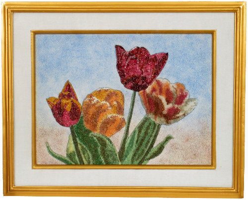 The scene depicts four beautiful flowers. The painting comes with hard wood frame. size: 21" x 17" weight: 5 lbs. |